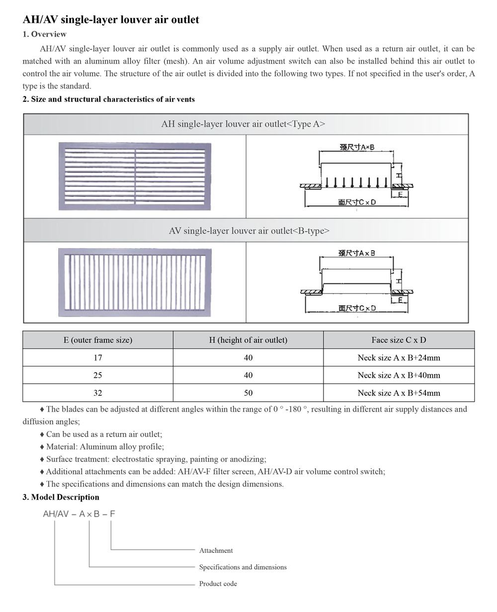 AH Single layer louver air outlet