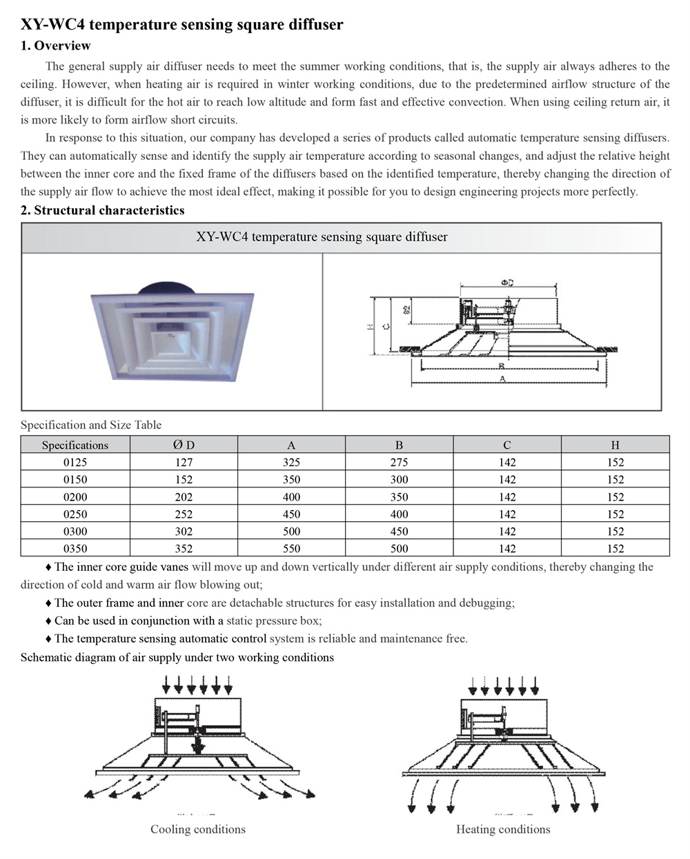 XY-WC4 Temperature sensing square diffuser